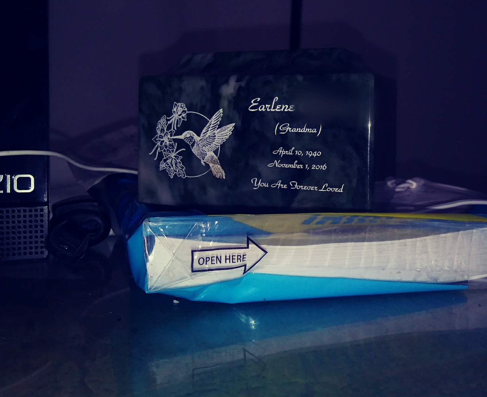 If I had one regret, it would be not really being able to say goodbye. It doesn't kill me inside or anything like that, but I think about it occasionally. She called me about a week before she passed. Probably just one of those things where her intuition told her to. And I missed the call and didn't call her back.