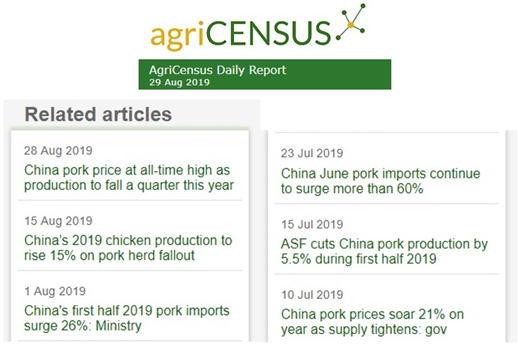 In China, every news article seems to be about pork pricing. The last I heard, it has reached 49% food inflation for the first 6 months of 2019 in China. Pork prices started soaring in July with 21% in a week; and then with the swine flu and the swift use of 60% of pork imports, they have pretty much run through everything that has been imported up to this point. It is a wild card from September onwards, especially going into the Golden Week on October 1st.