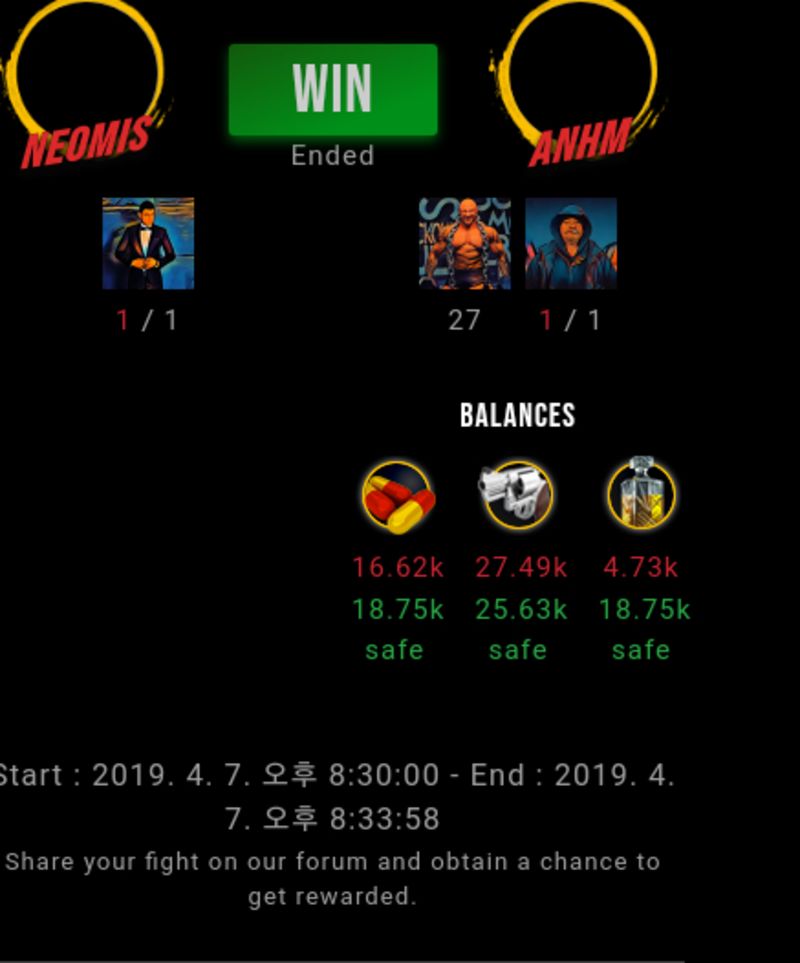 Congratulations @anhm ! Your fight received an upvote of 5% from the Dealer as incentive for your activity and as a gratitude for your support to the game. Want to know more about DrugWars.io?