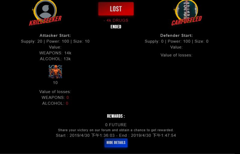 Check my latest fight ! krillseeker vs carfuffledcarfuffled (29)in #drugwars-fight • 7 years ago #gaming #fight #dw