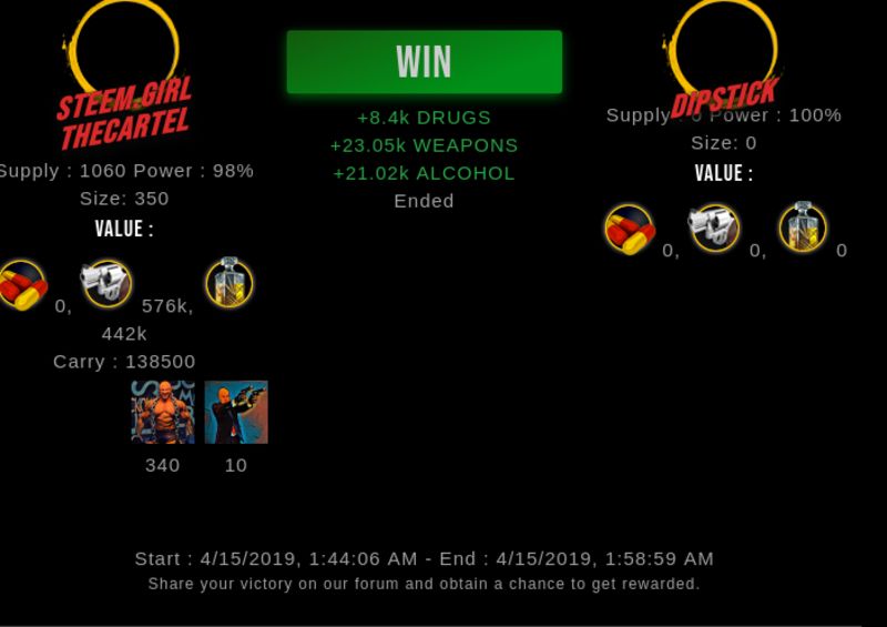 Check my latest fight ! steem.girl vs undefineddipstick (25)in #drugwars-fight • 7 years ago #gaming #fight #dw