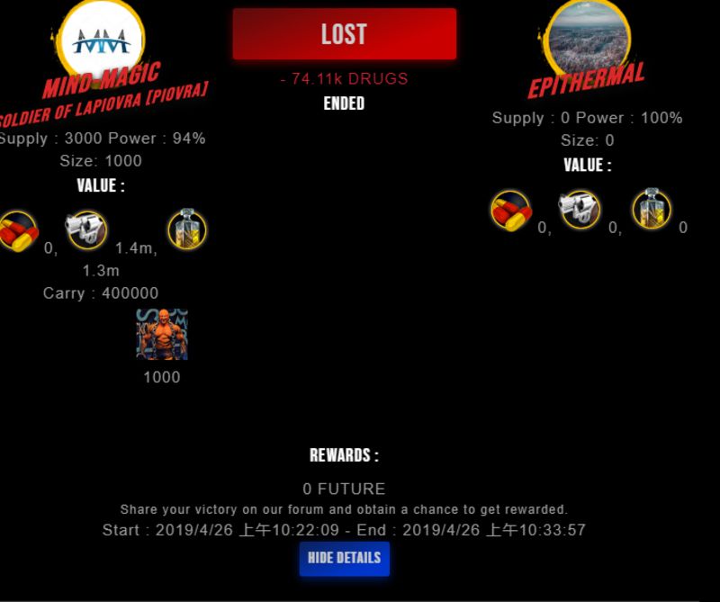 Check my latest fight ! mind-magic vs epithermalepithermal (27)in #drugwars-fight • 7 years ago #gaming #fight #dw