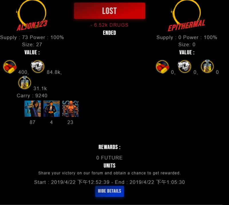 Check my latest fight ! aljon123 vs epithermalepithermal (27)in #drugwars-fight • 7 years ago #gaming #fight #dw