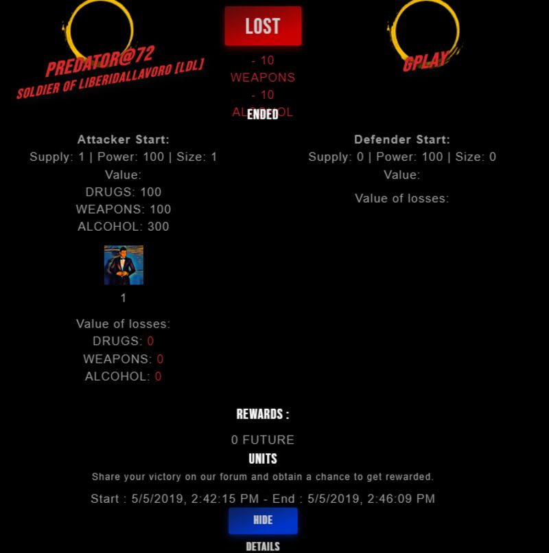 Congratulations @gplay ! Your fight received an upvote of 2% from the King Dealer as incentive for your activity and as a gratitude for your support to the game.
