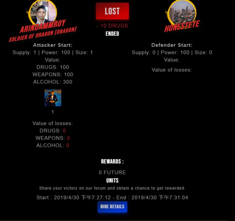 Check my latest fight ! arindammroy vs honestetehonestete (27)in #drugwars-fight • 7 years ago #gaming #fight #dw