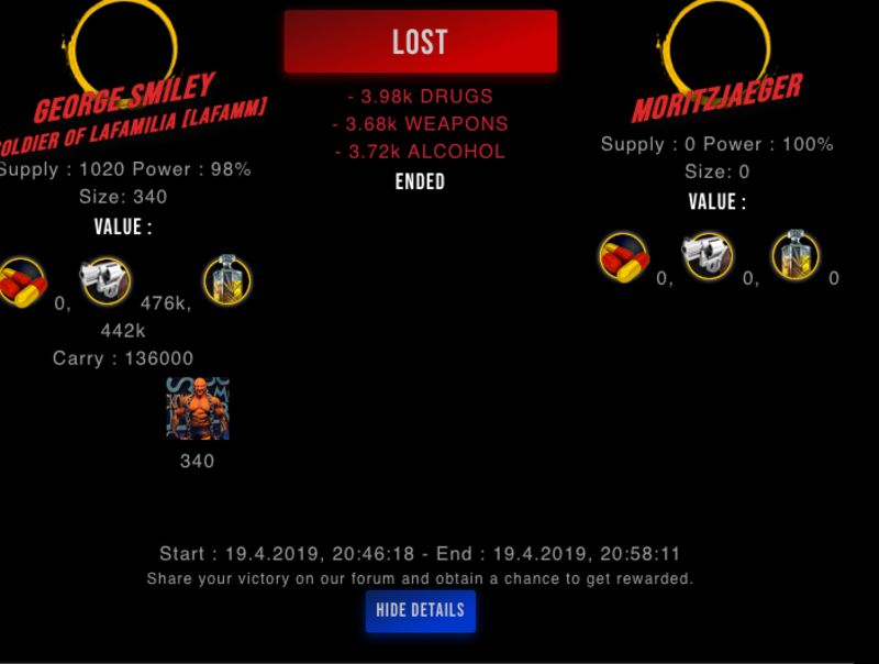 Check my latest fight ! undefined vs undefinedmoritzjaeger (45)in #drugwars-fight • 7 years ago #gaming #fight #dw