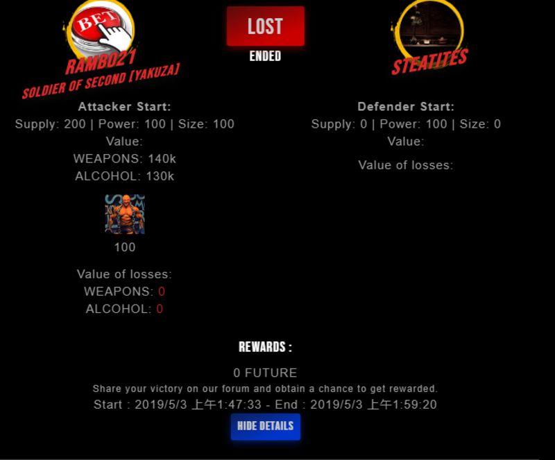 Check my latest fight ! rambo21 vs steatitessteatites (26)in #drugwars-fight • 7 years ago #gaming #fight #dw