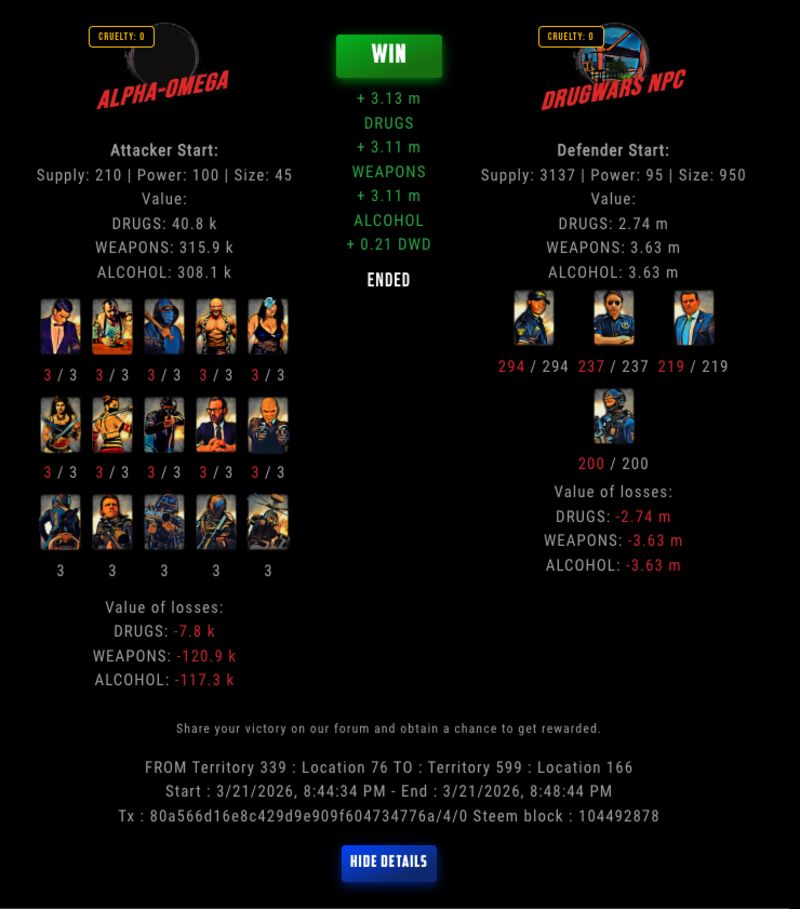 Check my latest fight ! alpha-omega vs The Govermentalpha-omega (72)in DrugWars • 6 hours ago #drugwars-fight #gaming #fight #dw