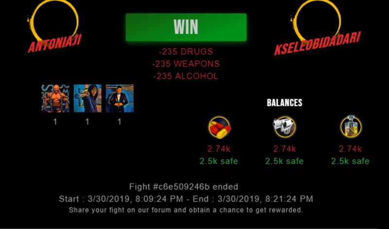 antoniaji's twitter Feed : 2019/03/30 15:48:26antoniaji (41)in #drugwars • 7 years ago Check my latest fight ! antoniaji vs kseleobidadari, #drugwars #gaming #future #steem #obyte #share2steem External Link : https://drugwars.io/i/antoniaji Anton Posted from Twitter via Share2Steem #gaming #future #steem #share2steem