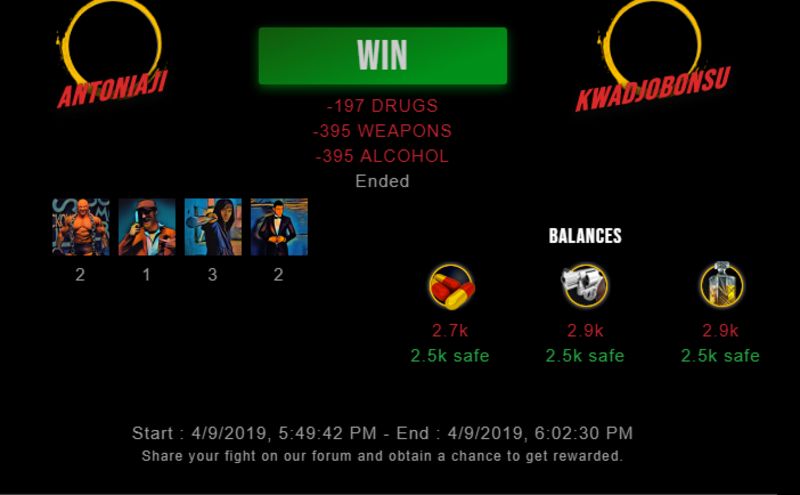 antoniaji's twitter Feed : 2019/04/09 13:25:34antoniaji (41)in #drugwars • 7 years ago Check my latest fight ! antoniaji vs kwadjobonsu, #drugwars #gaming #future #steem #obyte #share2steem External Link : https://drugwars.io/i/antoniaji Anton Posted from Twitter via Share2Steem #gaming #future #steem #share2steem