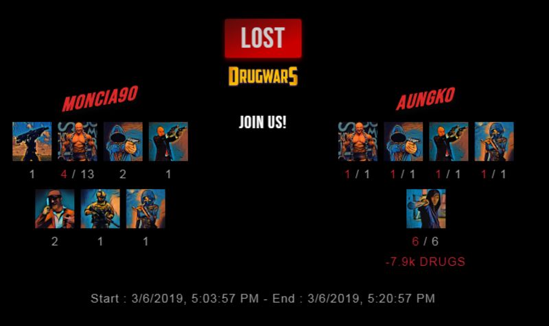 Congratulations @aungko ! Your fight received an upvote of 1% from the King Dealer as incentive for your activity and as a gratitude for your support to the game. Want to know more about DrugWars.io?