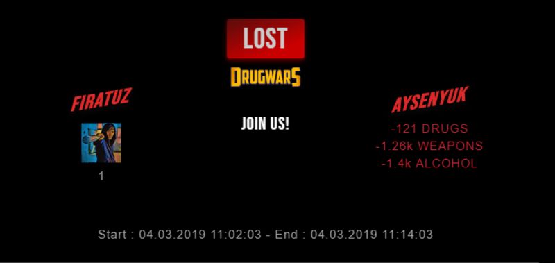 Check my latest fight ! firatuz vs aysenyukaysenyuk (51)in #drugwars • 7 years ago #gaming #fight #dw