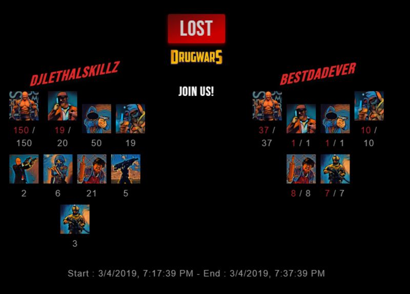 Check my latest fight ! djlethalskillz vs bestdadeverbestdadever (43)in #drugwars • 7 years ago #gaming #fight #dw