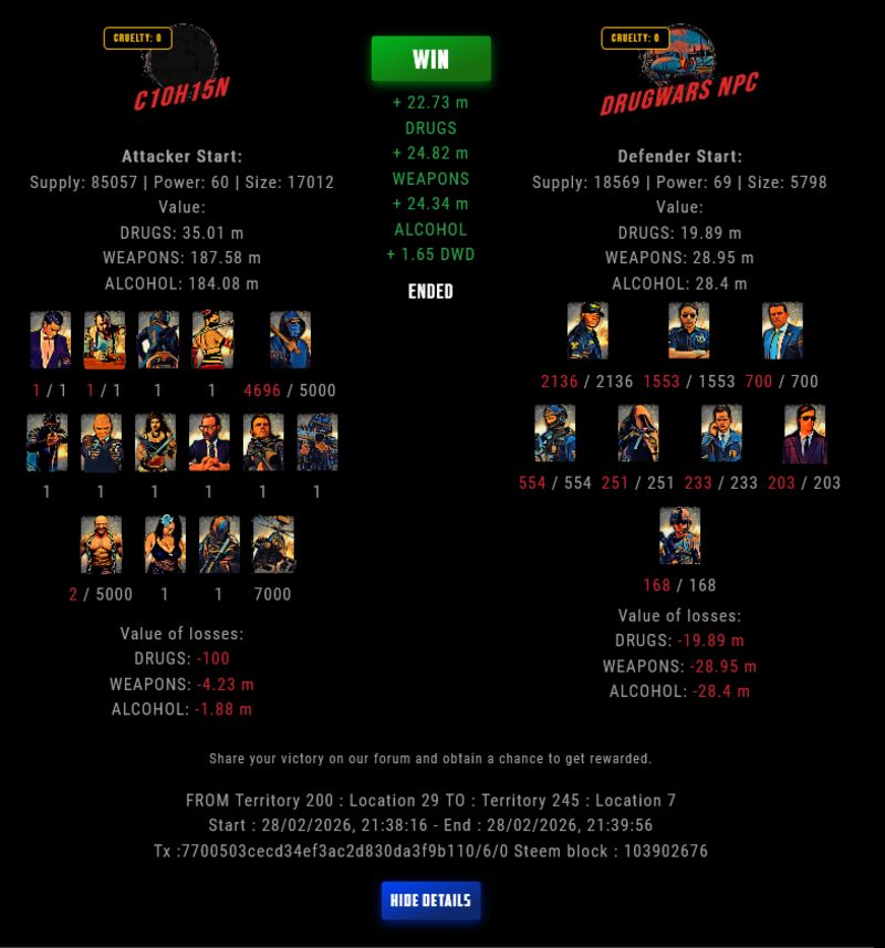 Check my latest fight ! c10h15n vs The Govermentblackwater-house (65)in DrugWars • 16 hours ago #drugwars-fight #gaming #fight #dw
