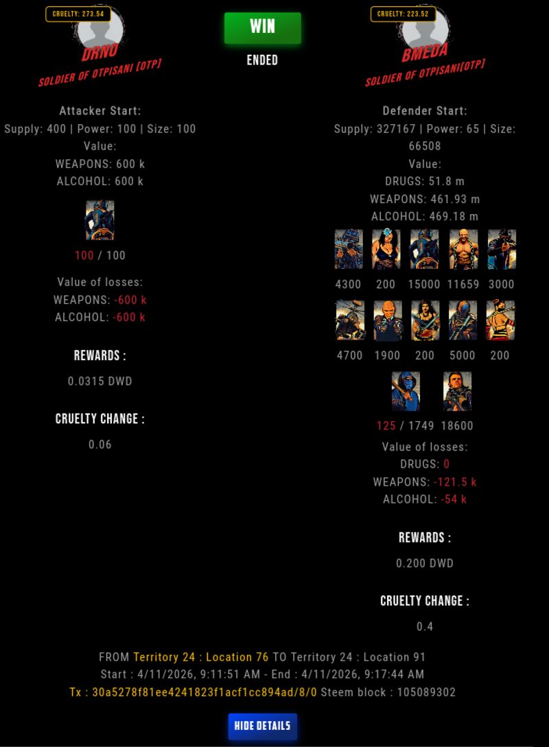 Check my latest fight ! drno vs bmedabmeda (60)in DrugWars • 8 hours ago #drugwars-fight #gaming #fight #dw