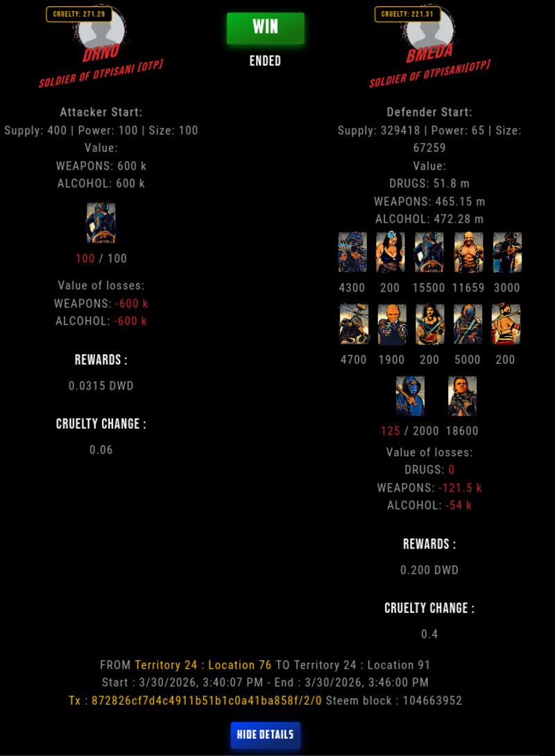 Check my latest fight ! drno vs bmedabmeda (60)in DrugWars • yesterday #drugwars-fight #gaming #fight #dw