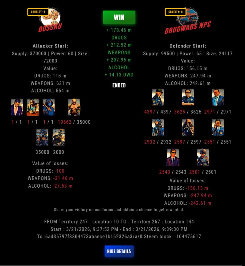 Check my latest fight ! bossku vs The Govermentbossku (63)in DrugWars • 5 hours ago #drugwars-fight #gaming #fight #dw