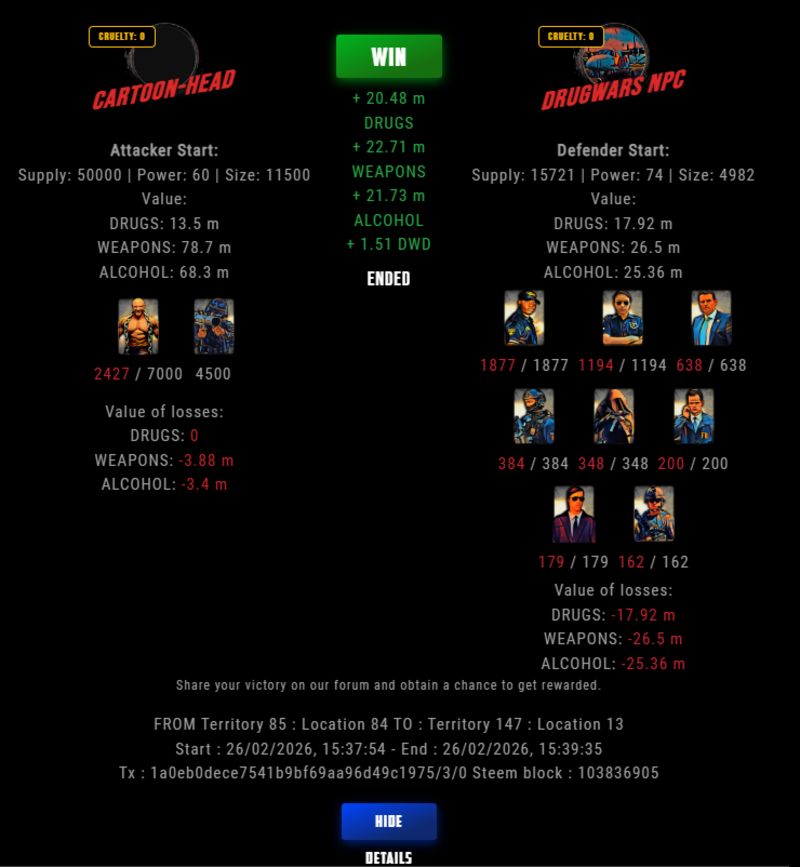 Check my latest fight ! cartoon-head vs The Govermentcartoon-head (59)in DrugWars • 8 hours ago #drugwars-fight #gaming #fight #dw