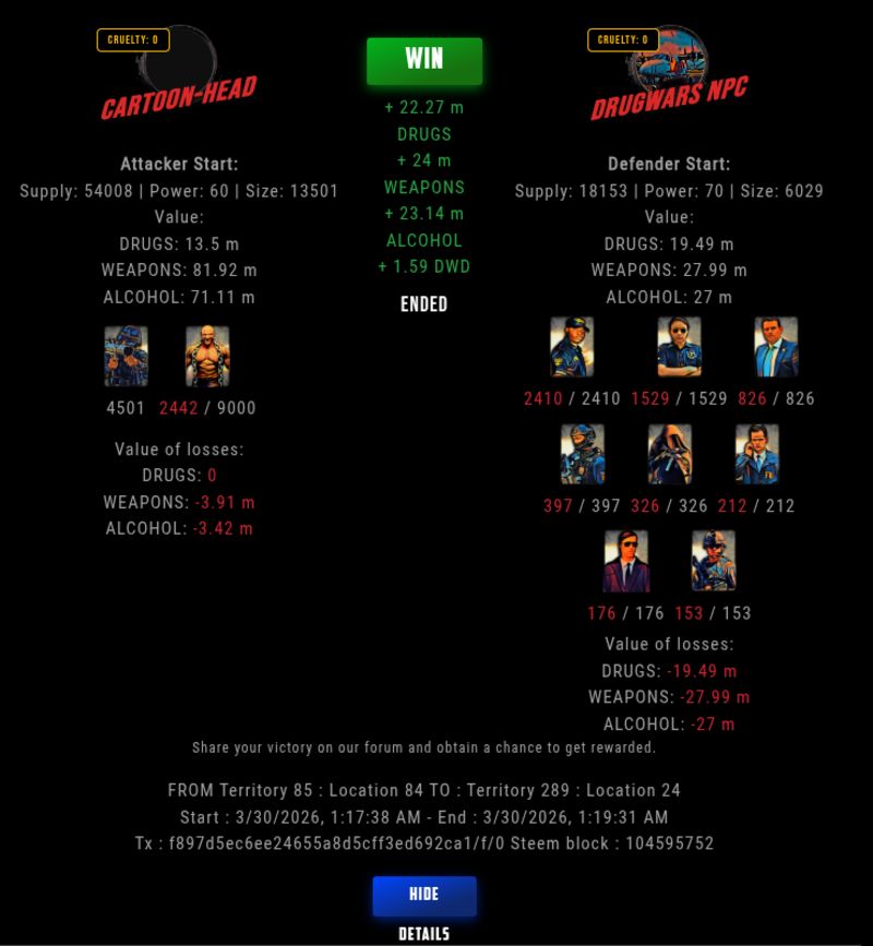 Check my latest fight ! cartoon-head vs The Govermentcartoon-head (59)in DrugWars • 10 hours ago #drugwars-fight #gaming #fight #dw
