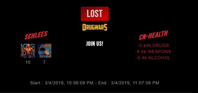 Check my latest fight ! schlees vs cn-healthcn-health (33)in #drugwars • 7 years ago #gaming #fight #dw