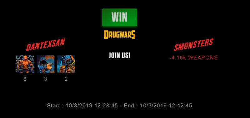 Check my latest fight ! dantexsan vs smonstersdantexsan (36)in #drugwars • 7 years ago #drugwars-fight #gaming #fight #dw