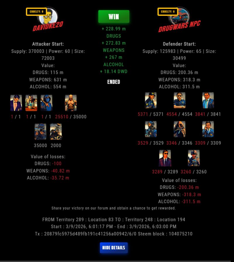Check my latest fight ! davidke20 vs The Govermentdavidke20 (74)in DrugWars • 10 hours ago #drugwars-fight #gaming #fight #dw