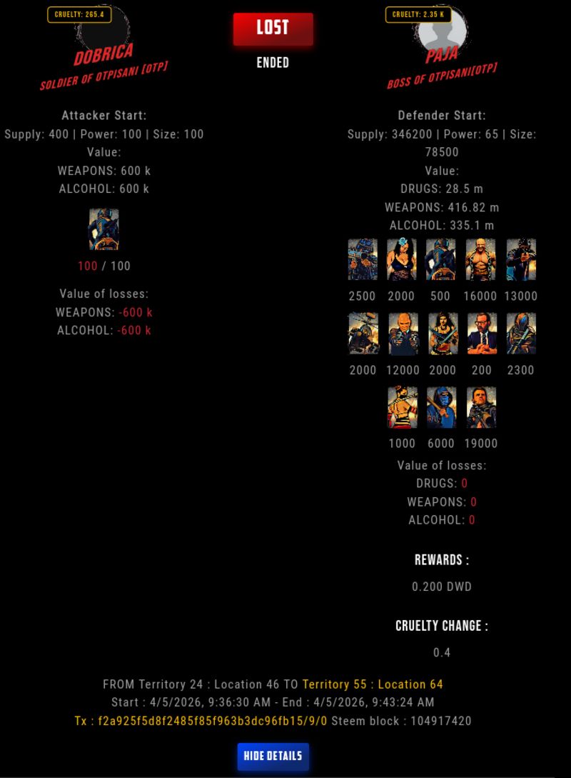 Congratulations @dobrica ! Your fight received an upvote of 24% from the Dealer as incentive for your activity and as a gratitude for your support to the game.