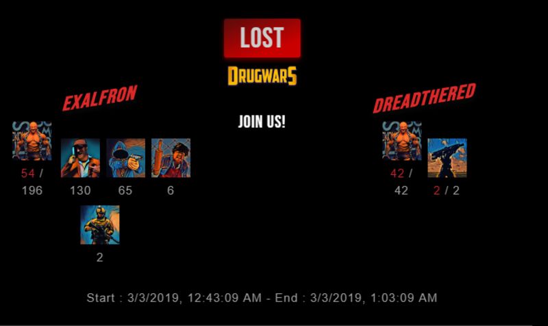 Check my latest fight ! exalfron vs dreadthereddreadthered (32)in #drugwars • 7 years ago #gaming #fight #dw