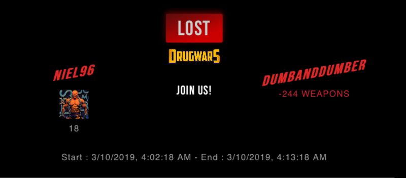 Check my latest fight ! niel96 vs dumbanddumberdumbanddumber (39)in #drugwars • 7 years ago #gaming #fight #dw