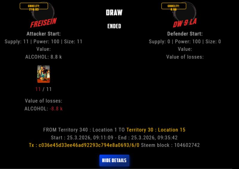 Congratulations @freisein ! Your fight received an upvote of 33.3% from the Dealer as incentive for your activity and as a gratitude for your support to the game.