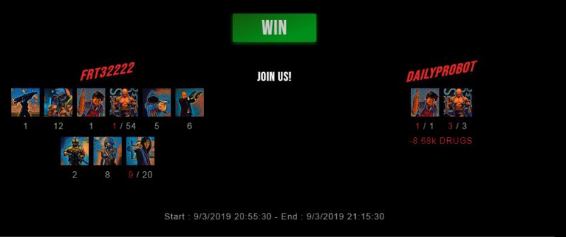 Check my latest fight ! frt32222 vs dailyprobotfrt32222 (38)in #drugwars • 7 years ago #drugwars-fight #gaming #fight #dw