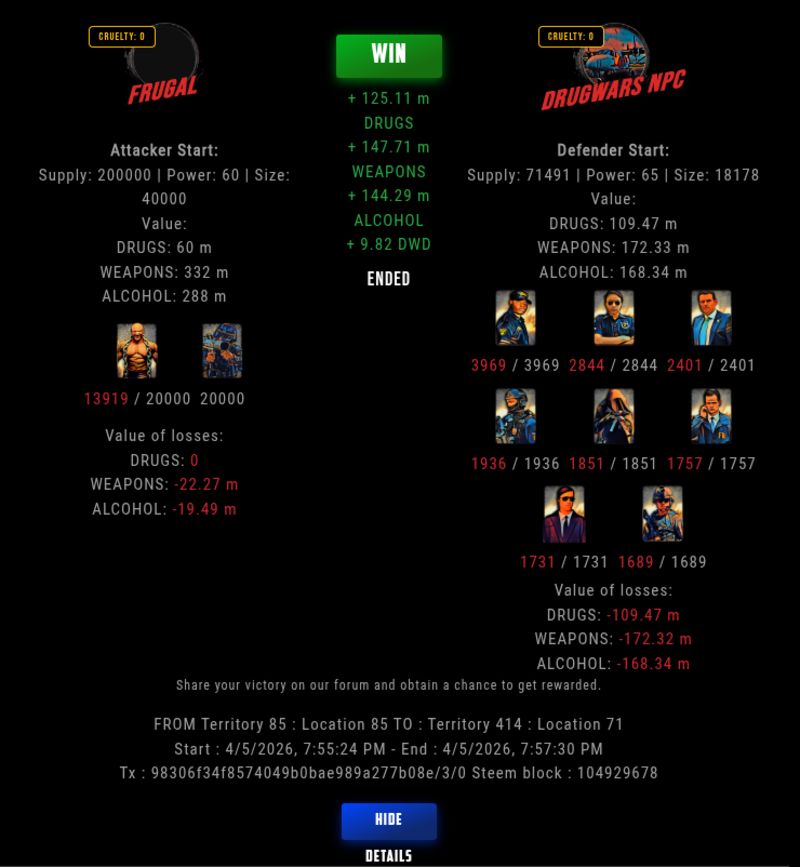 Check my latest fight ! frugal vs The Govermentfrugal-fun (65)in DrugWars • 15 hours ago #drugwars-fight #gaming #fight #dw