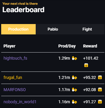 Climb the drug production leaderboard for daily DW token payouts (in game token)