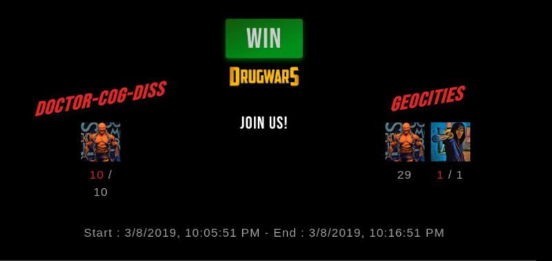Check my latest fight ! doctor-cog-diss vs geocitiesgeocities (33)in #drugwars • 7 years ago #gaming #fight #dw