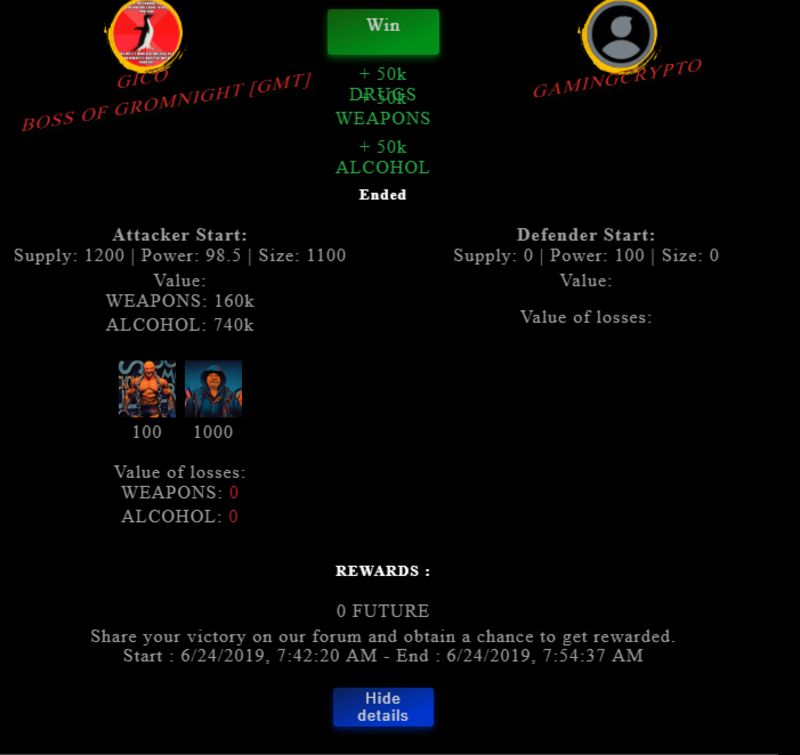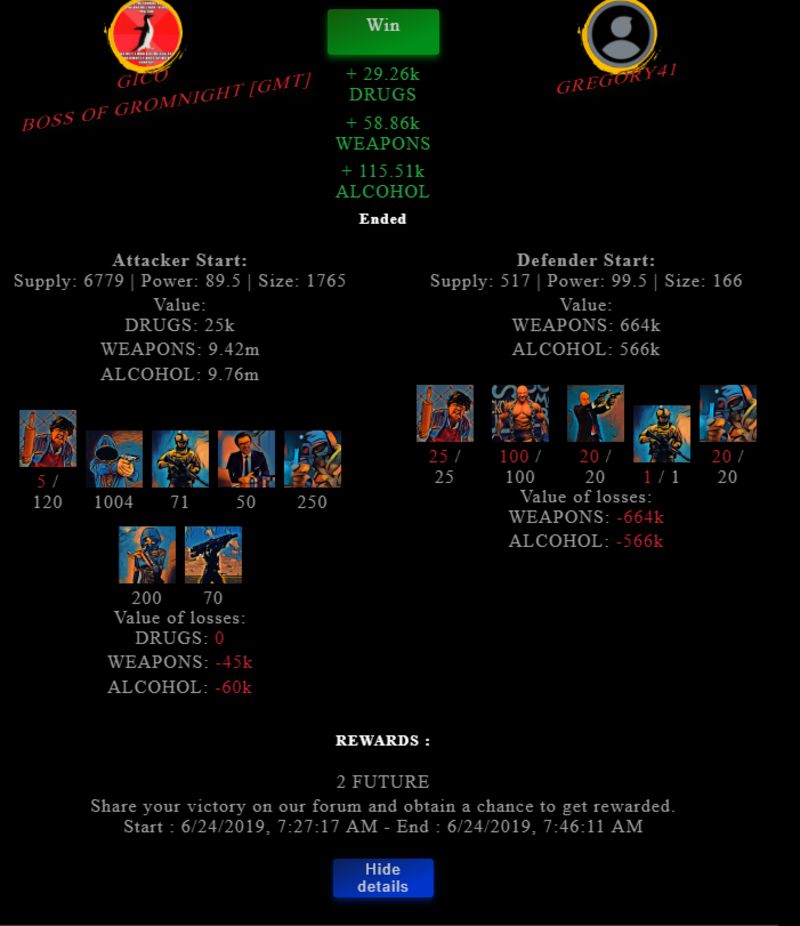my Drugwars history fightgico (36)in #drugwars • 7 years ago mygang lvl4 recruit member: https://drugwars.io/gangs/gang/gromnight #games #history #news #fights