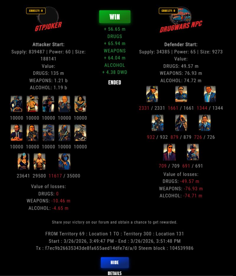 Congratulations @gtpjoker ! Your fight received an upvote of 49.4% from the Dealer as incentive for your activity and as a gratitude for your support to the game.