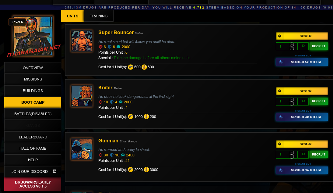 And if you like those steems, DRUGWARS also offers another way to earn them, as another 3% of the DRUGWARS' account balance is given away each day with the Heist Hold'up