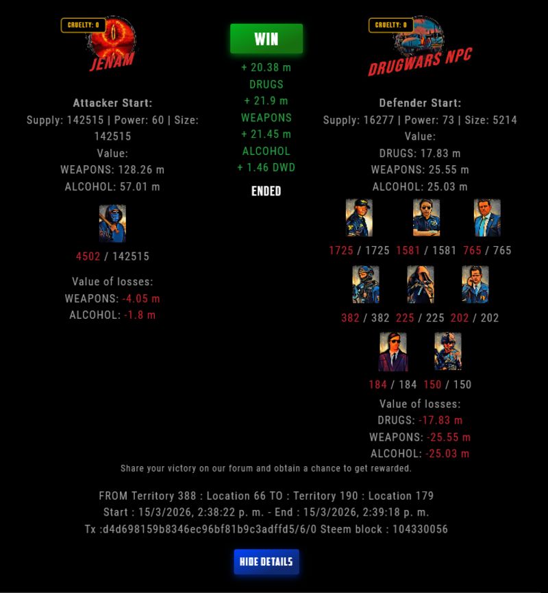 Check my latest fight ! jenam vs The Govermentjenam (62)in DrugWars • 23 hours ago #drugwars-fight #gaming #fight #dw