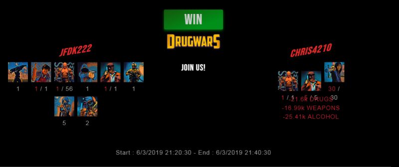 Check my latest fight ! jfdk222 vs chris4210jfdk222 (45)in #drugwars • 7 years ago #gaming #fight #dw