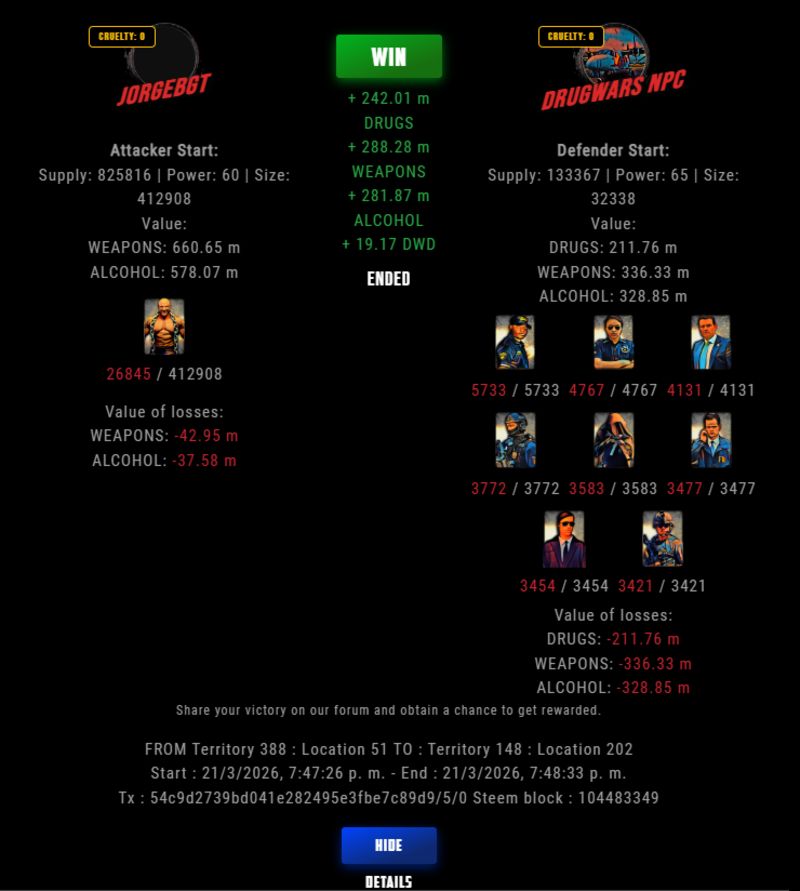 Check my latest fight ! jorgebgt vs The Govermentjorgebgt (73)in DrugWars • 3 hours ago #drugwars-fight #gaming #fight #dw