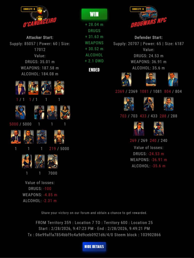 Check my latest fight ! o'cangaceiro vs The Govermentlastravage (67)in DrugWars • 22 hours ago #drugwars-fight #gaming #fight #dw