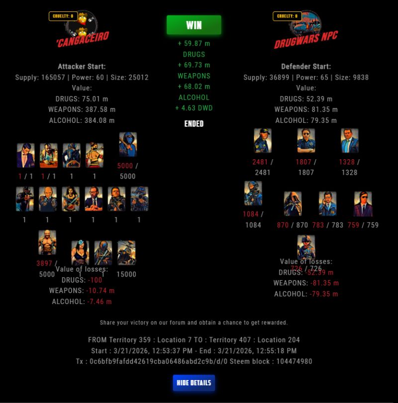 Check my latest fight ! 'cangaceiro vs The Govermentlastravage (67)in DrugWars • 6 hours ago #drugwars-fight #gaming #fight #dw