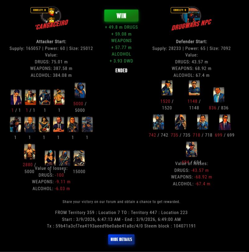 Check my latest fight ! 'cangaceiro vs The Govermentlastravage (67)in DrugWars • 14 hours ago #drugwars-fight #gaming #fight #dw