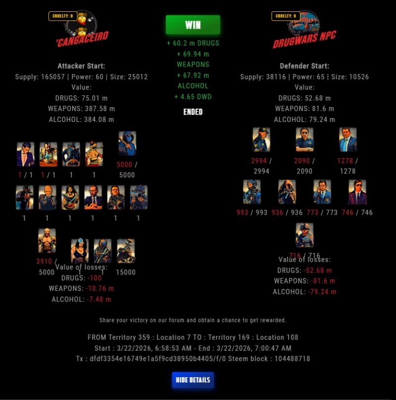 Check my latest fight ! 'cangaceiro vs The Govermentlastravage (67)in DrugWars • yesterday #drugwars-fight #gaming #fight #dw
