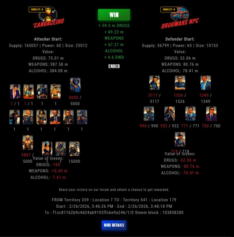 Check my latest fight ! 'cangaceiro vs The Govermentlastravage (67)in DrugWars • 7 hours ago #drugwars-fight #gaming #fight #dw