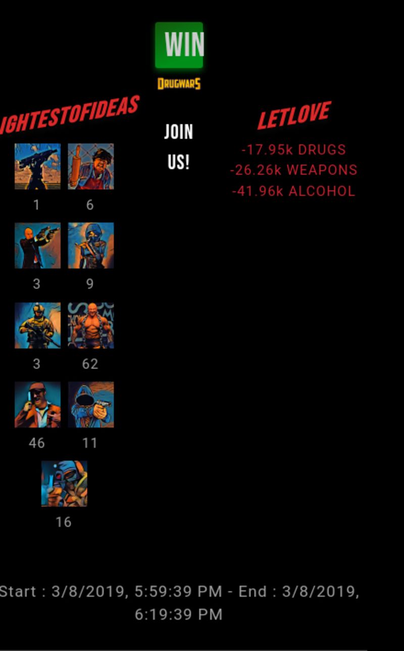 Check my latest fight ! lightestofideas vs letlovelightestofideas (54)in #drugwars • 7 years ago #gaming #fight #dw