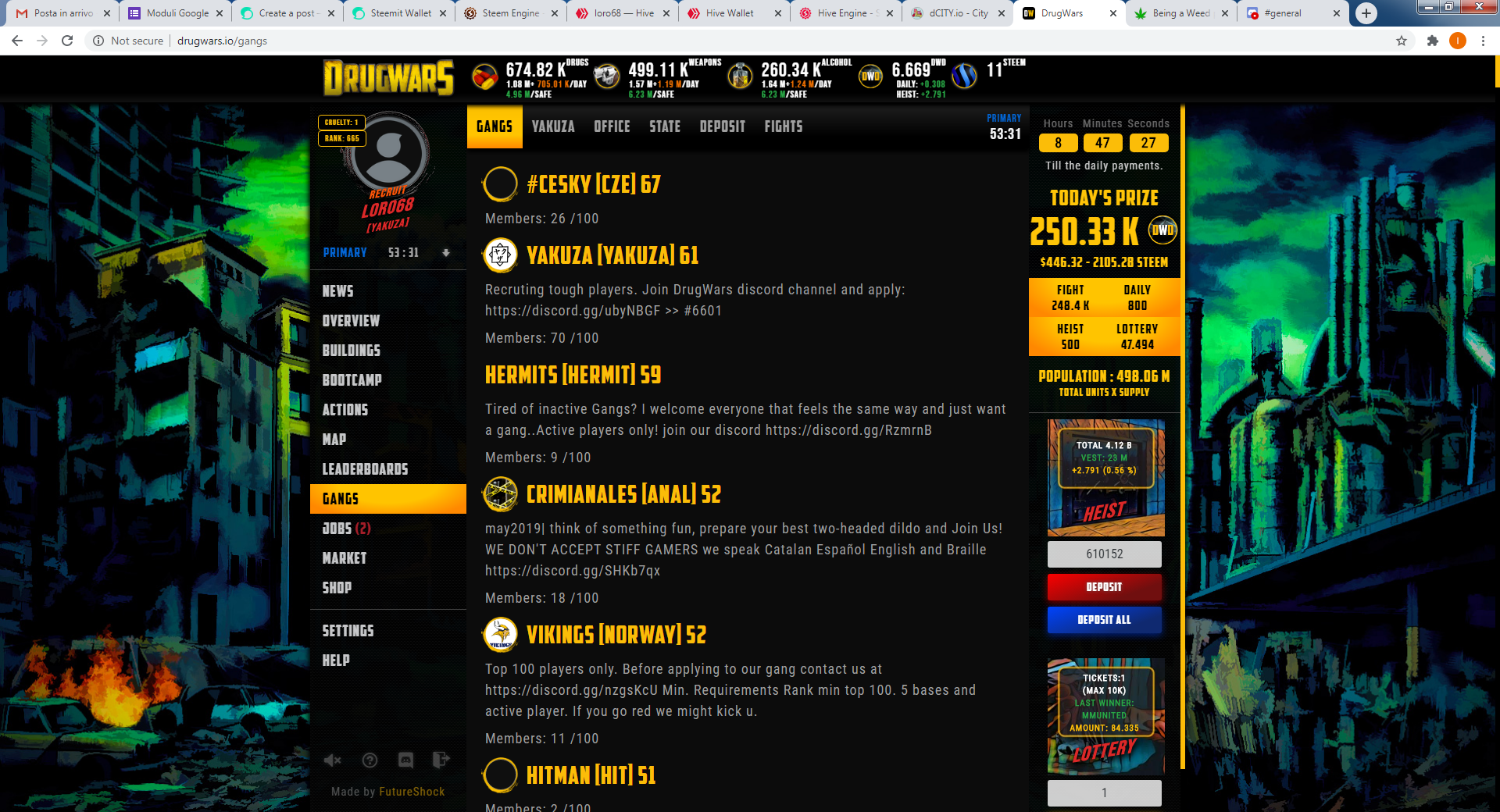 To improve the gang power, I decided to become drug producer in dcity too and I will give some of my production to the users will join in our gang and help us to reach the top!