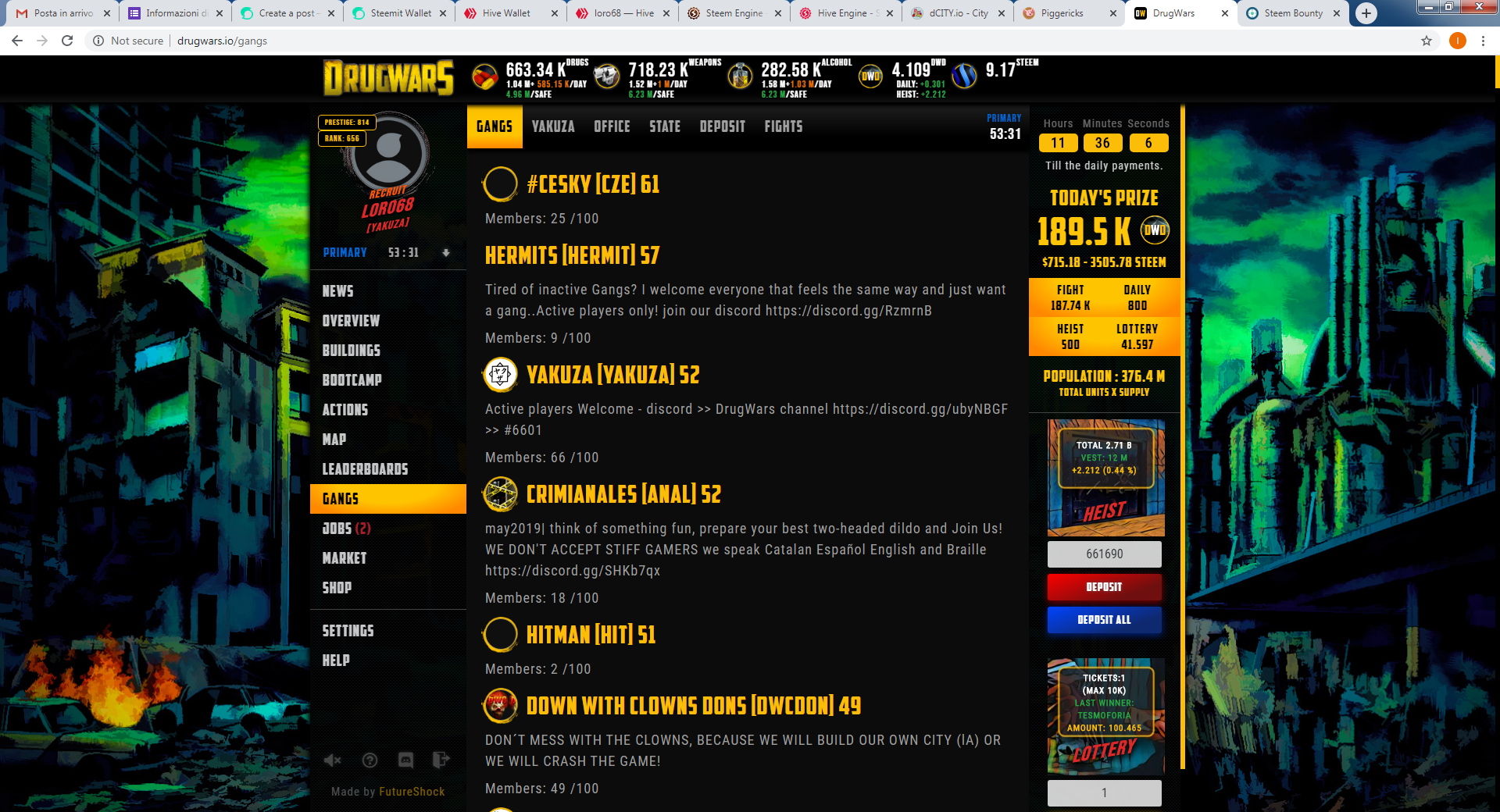 Yes, except the n.1 and n.2 gangs which are doing robbery and destroy other gangs, our is very peaceful and we are rising positions more thanks to jobs than making crazy wars with others gang.
