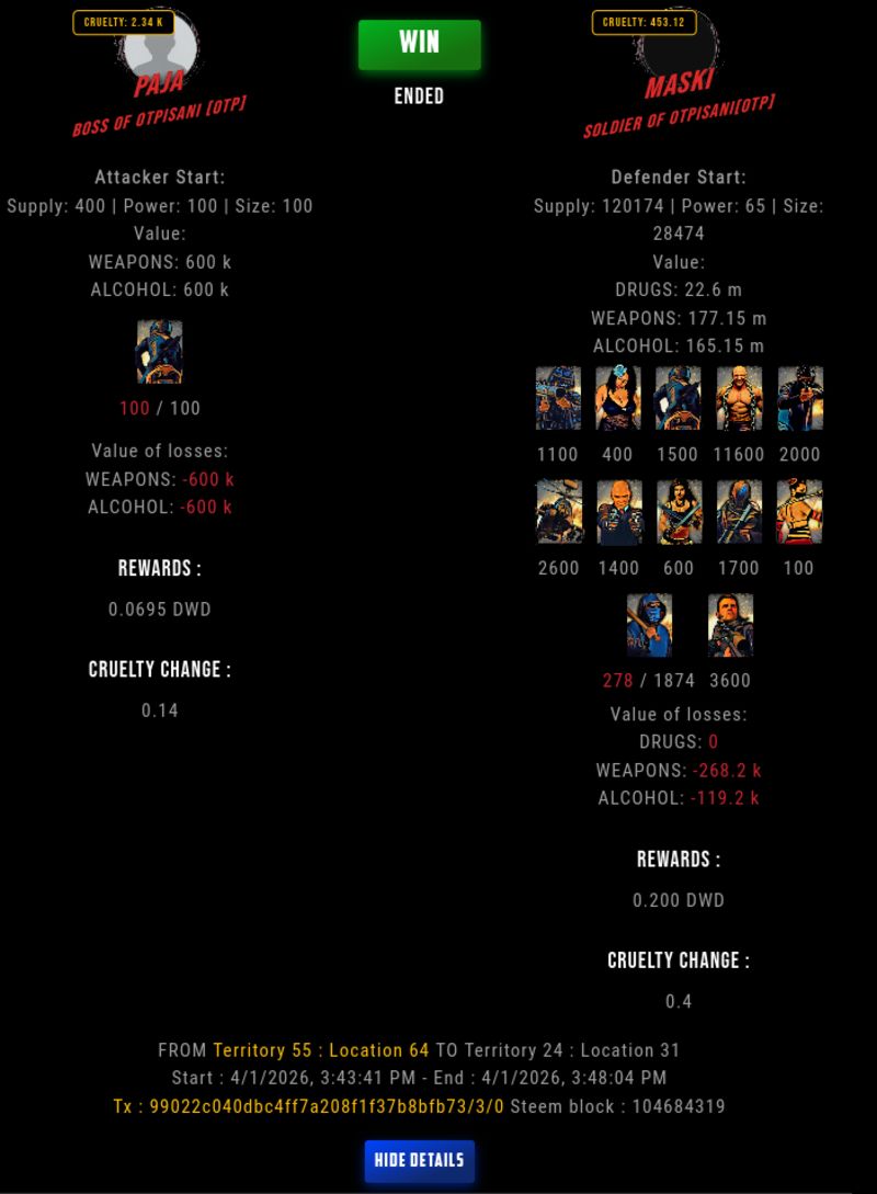 Check my latest fight ! paja vs maskimaski (61)in DrugWars • 14 hours ago #drugwars-fight #gaming #fight #dw