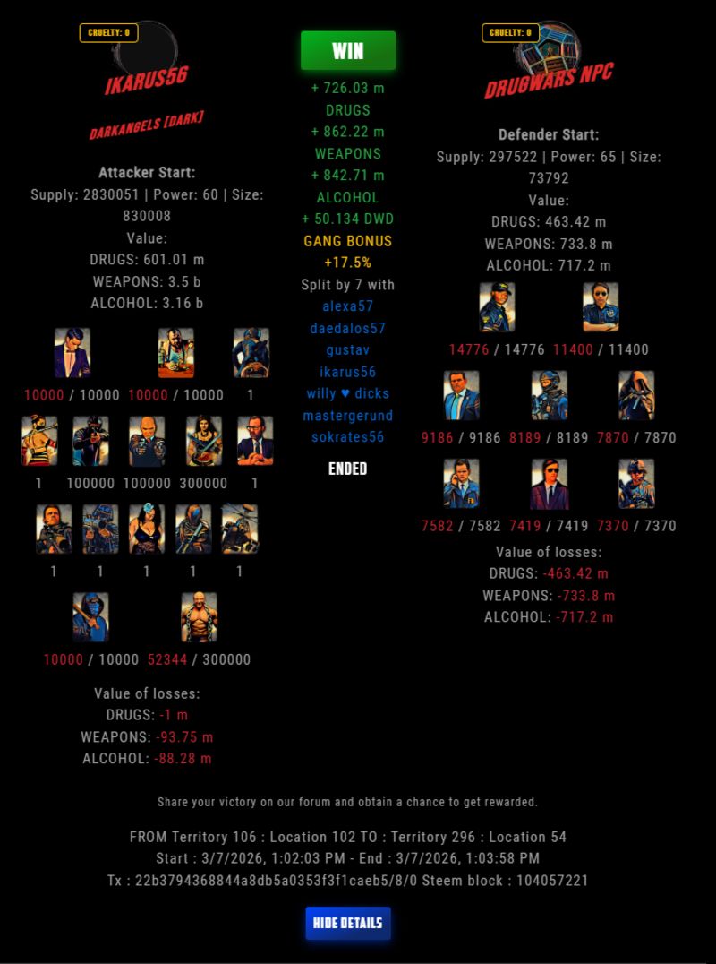 Check my latest fight ! ikarus56 vs The Govermentmastergerund (66)in DrugWars • 7 hours ago #drugwars-fight #gaming #fight #dw